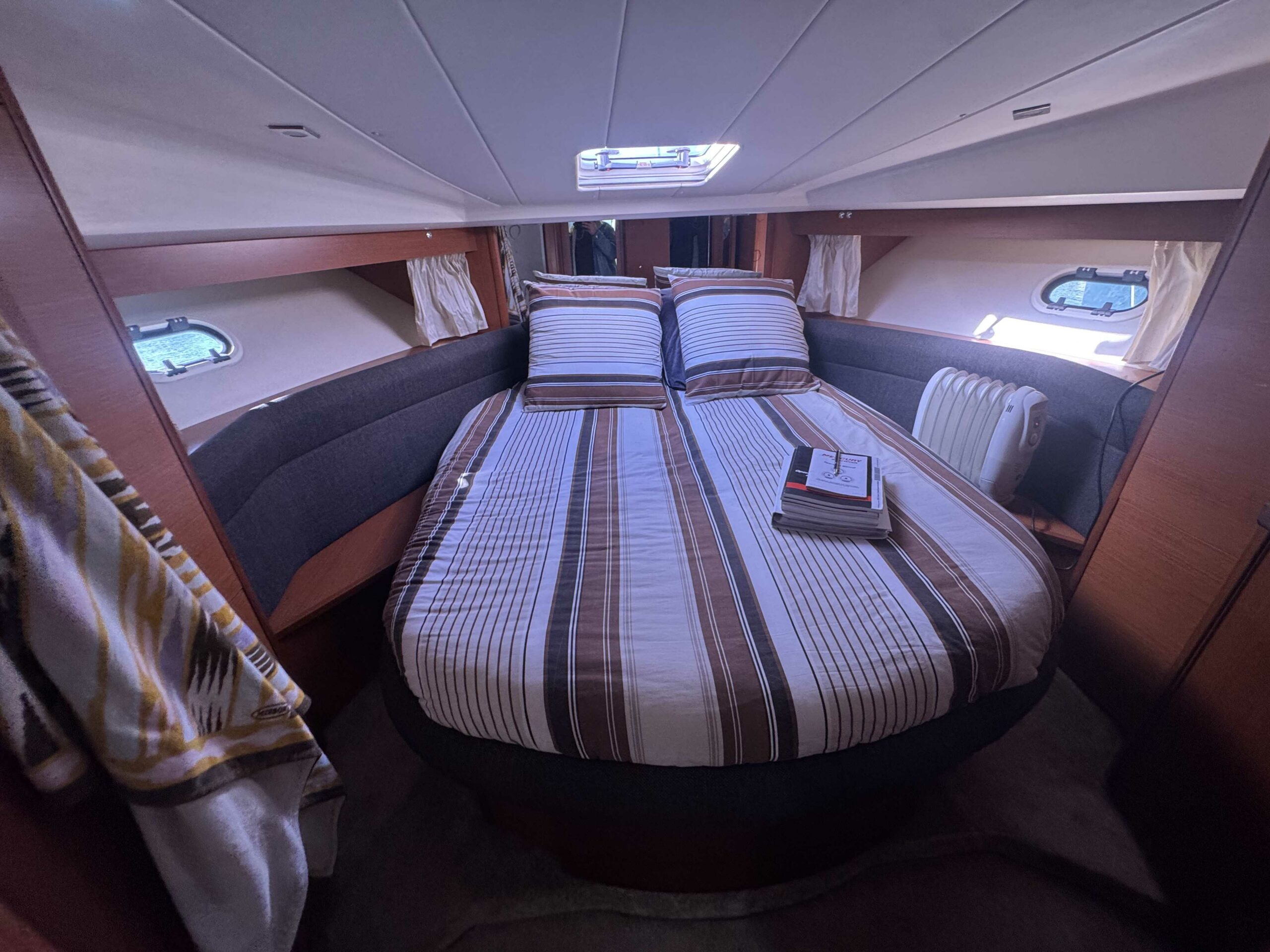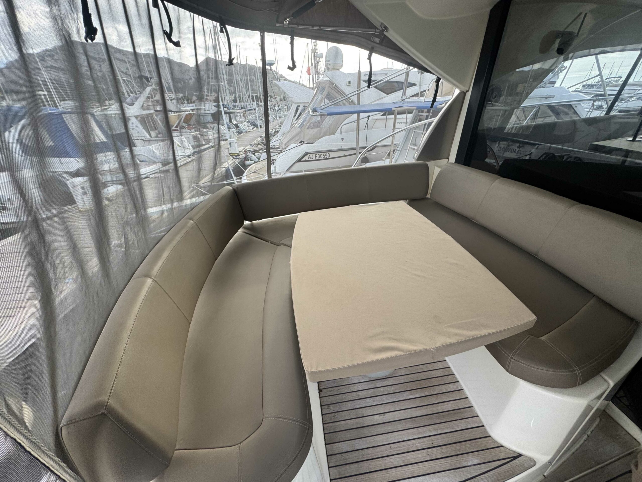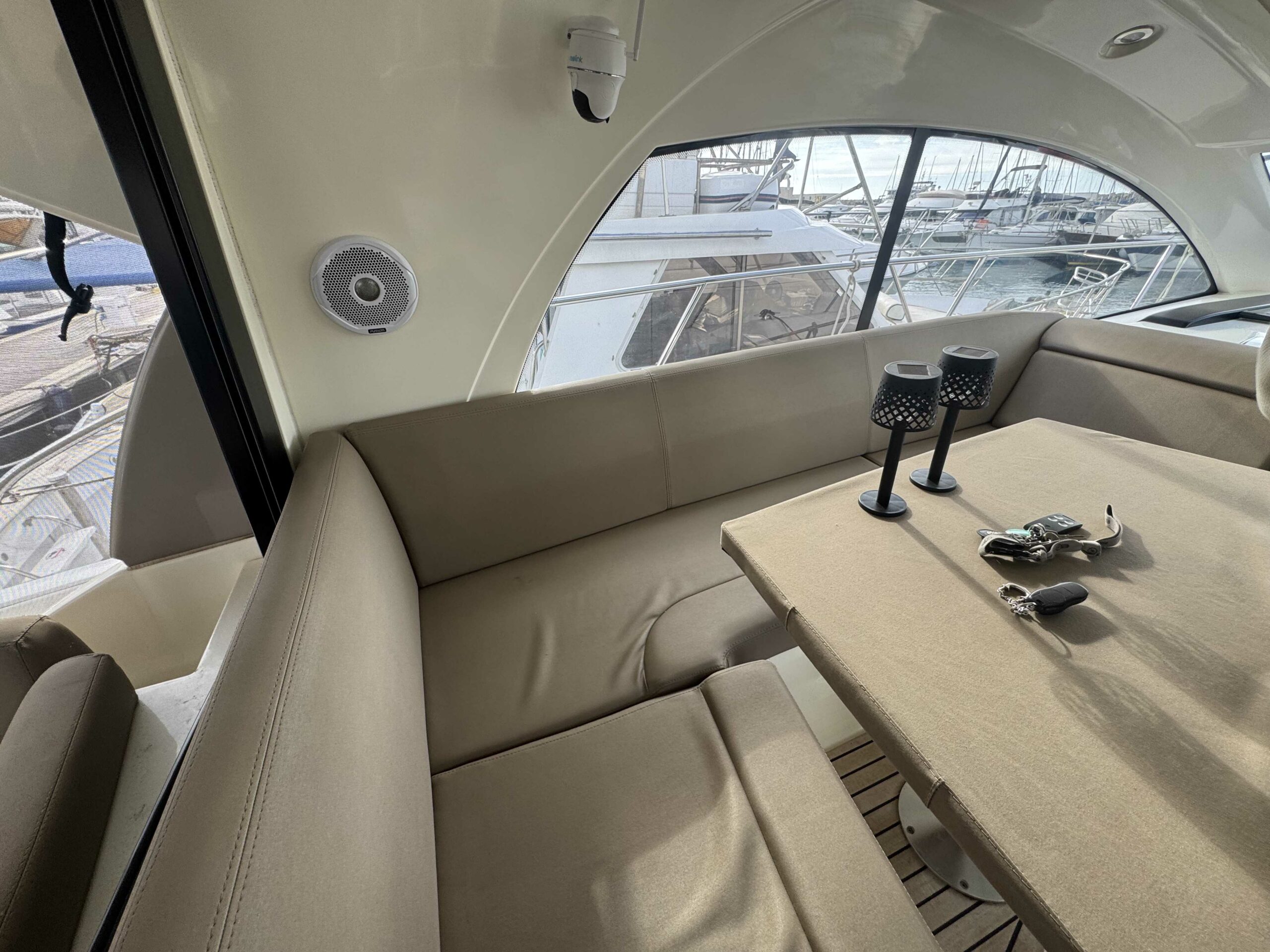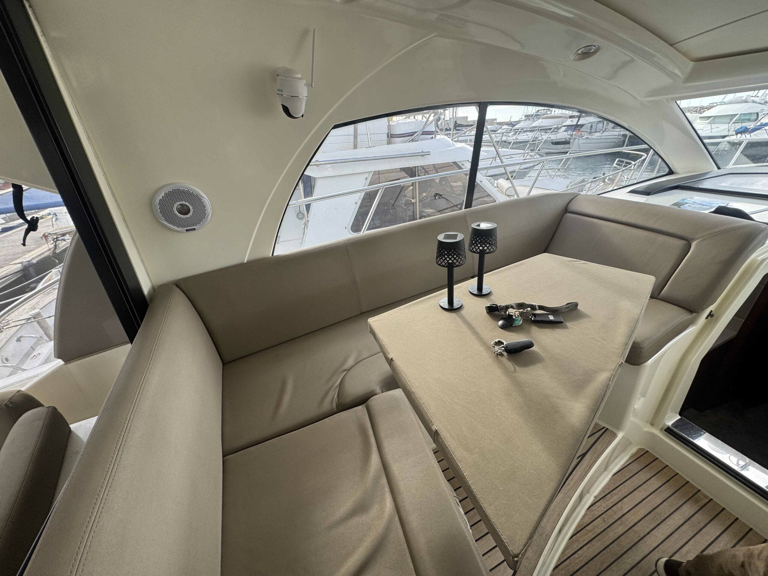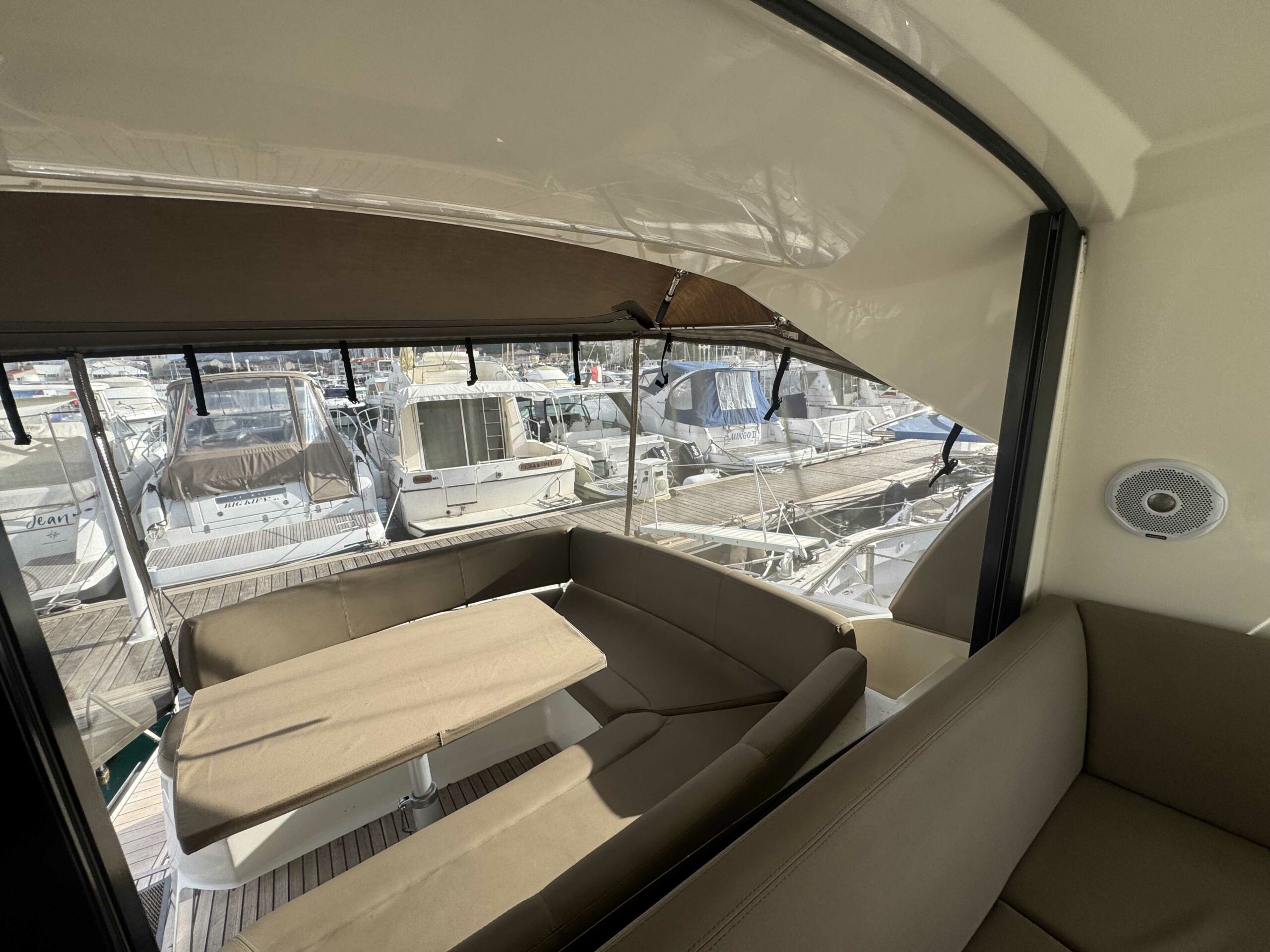 La sellerie a été refaite en 2019 et est en très bon état, protégée par les tauds de cockpit.