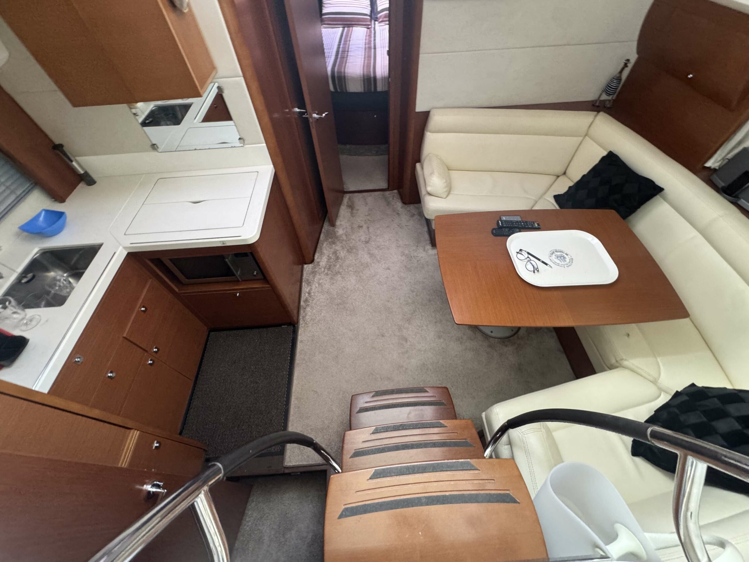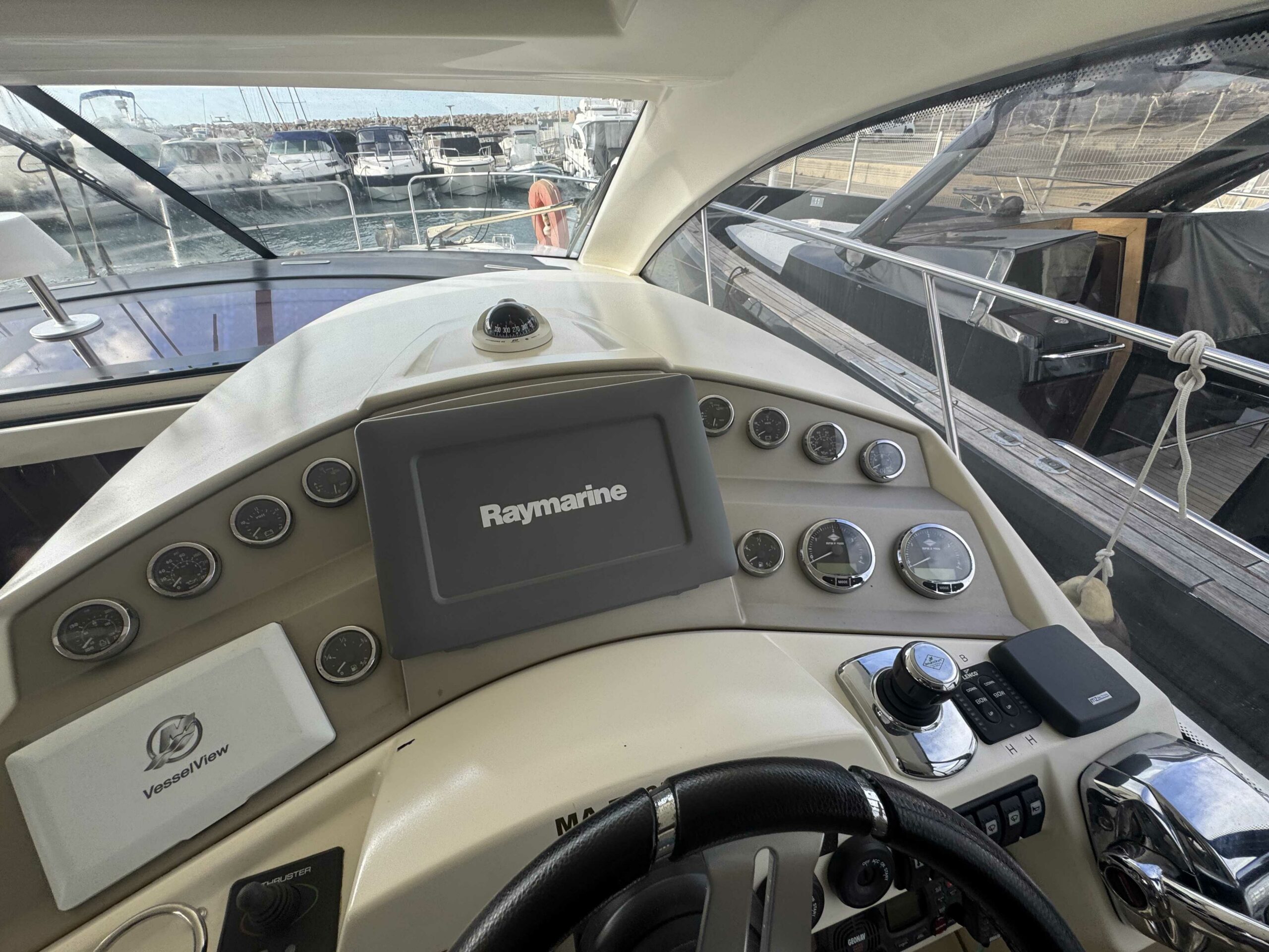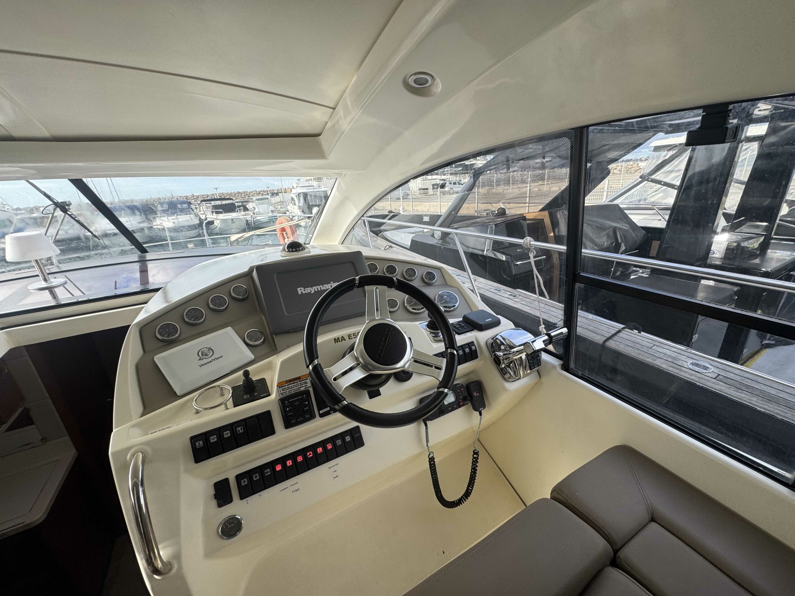 Pour un confort de navigation optimal, le bateau est doté d’une électronique Raymarine complète : sondeur, radar, pilote automatique, VHF, propulseur d’étrave, joystick de commande et système de position stationnaire.